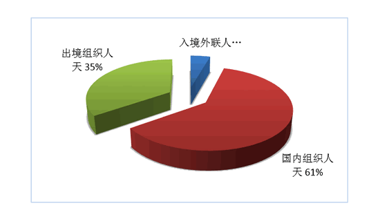 按照入境外聯(lián)人天、國內(nèi)組織人天、出境組織人天三項指標(biāo),入境旅游、國內(nèi)旅游、出境旅游市場人天所占份額依次為4%、61%、35%(見圖7)。
